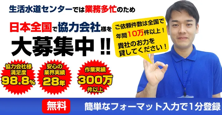 生活水道センターでは業務強化のため水回り修理の協力店を募集しています!
