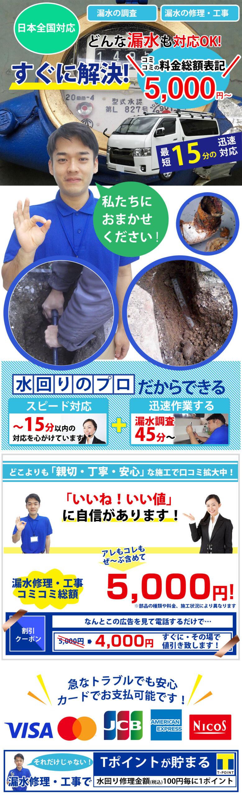 現場作業は漏水修理・工事のプロが作業させていただきます。確実に丁寧に、水回りを長くご使用いただけるためのメンテナンスの方法もご案内させていただいております。作業後は安心して水回りをお使いいただけます。