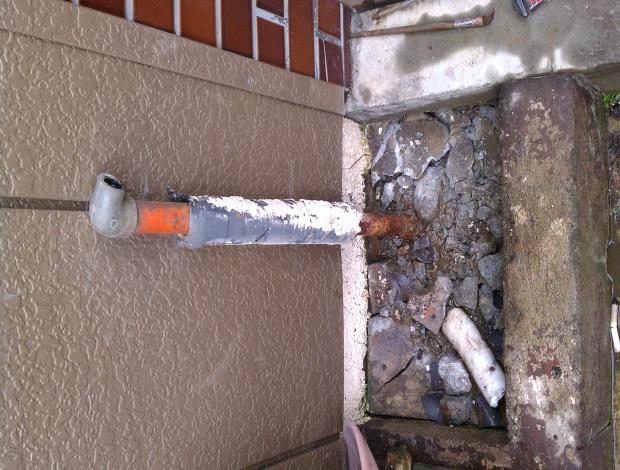 原因は給水管そのものの老朽化で、地面への埋め込み部分で漏水しているようでした。