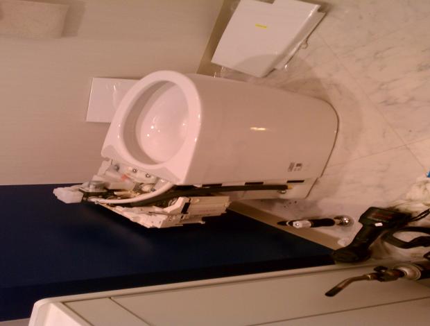 これだとメーカーメンテナンスに来てもらう必要が有るので直ぐに修理で対応することは難しいため、今回は急遽便器の交換作業をさせていただくこととなりました。