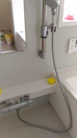 そして、洗い場のほうもシャワーで水を流して、排水の様子を観察。