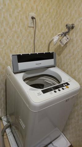 現場となる洗濯機は一階の洗面所にありました。キッチンのお隣です。見てみるとたしかに壁からじわじわとお水が漏れているようです。