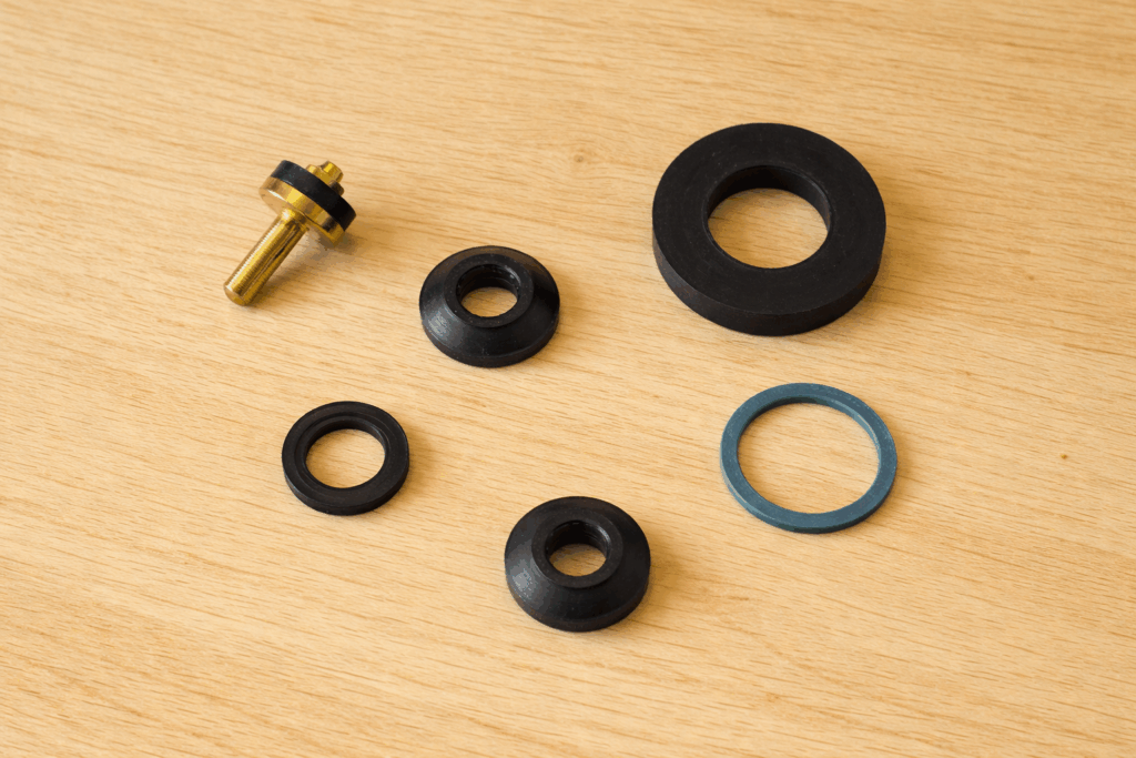 パッキンは水道設備において密閉性を保つシール材として機能します。金属部品同士の接合部に挟み込むことで、水の漏れを防ぎ、適切な水圧を維持する役割を担っています。